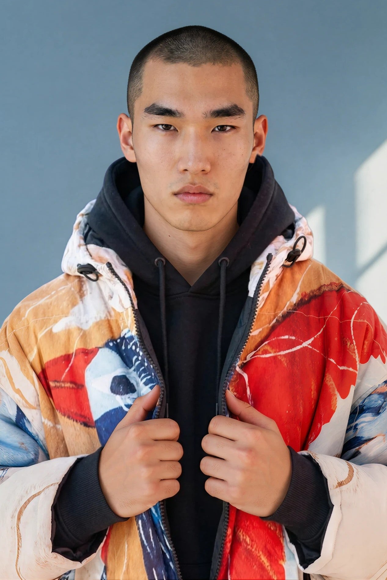 Martin Bigum’s work is recognisable at first glance, yet layered with references that unfold over time. For this Artist Edition, Bigum’s work is translated into form. The surface shifts from canvas to textile, from wall to movement. It allows the work to exist in changing light, in motion, in everyday situations that are rarely considered part of an artwork’s life.