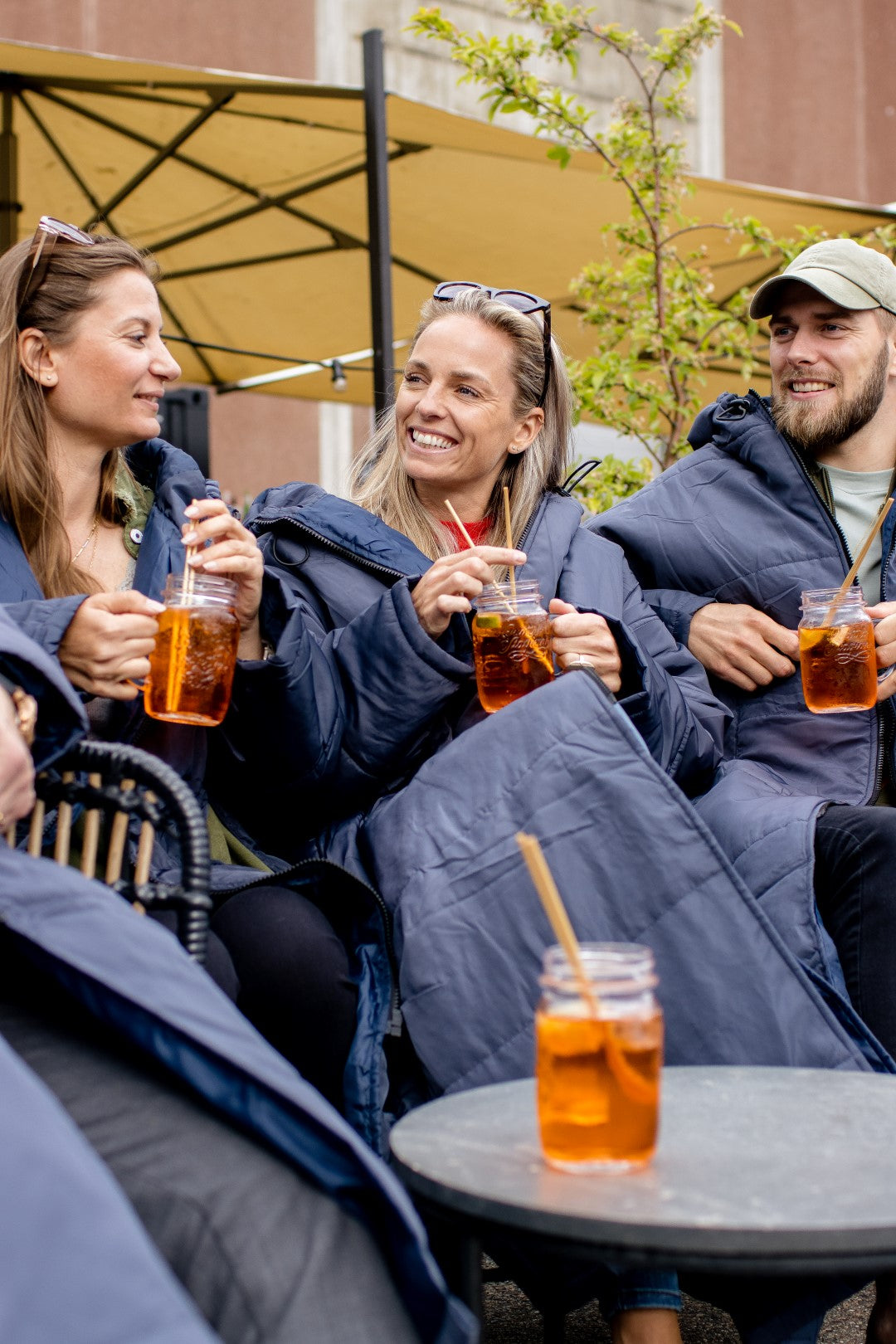 Rebecca Johansen, CEO of Sittingsuits ApS and owner of Axelhus & Axelbar in Elsinore, Denmark, has been an experienced restaurateur for over 16 years. With 450 outdoor seatings combined, she faced the challenge of keeping her guests warm and comfortable in all types of weather. While traditional solutions like outdoor heating and blankets offered some respite, they lacked the sustainability and effectiveness that Rebecca desired.