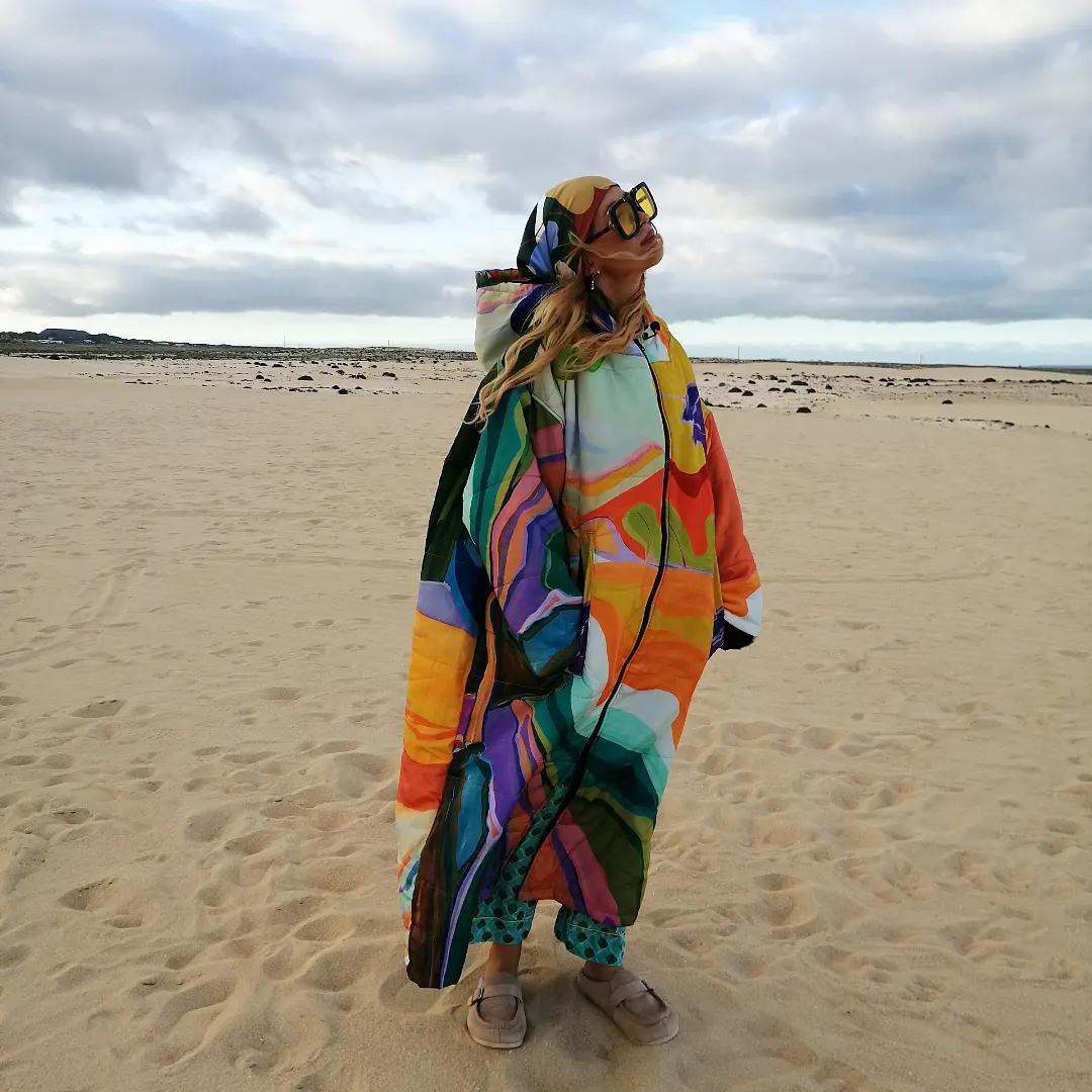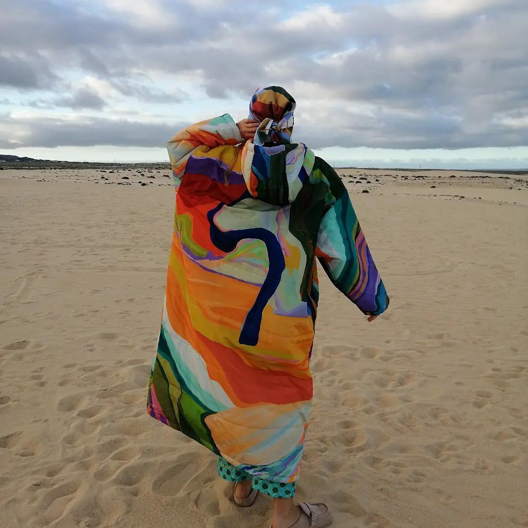 The collaboration is a perfect match, as both Özlem and Sittingsuit share a commitment to sustainable practices and a desire to create something unique and beautiful. Özlem's art is being transformed into wearable pieces that express individuality and creativity, while Sittingsuit's garments provide comfort and practicality for daily wear.