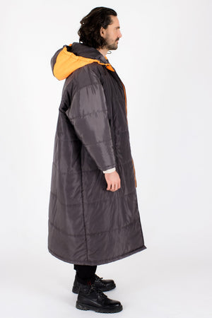 Anthracite grey Sittingsuit with sporty orange details on the hood and zipper fabric - Unisex.